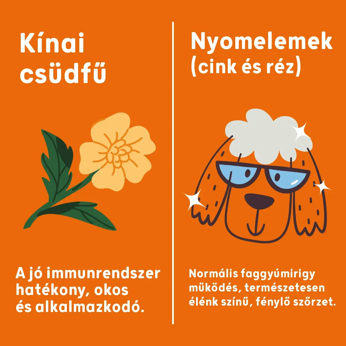 • Omega-3 halolaj, természetes növényi anyagok és olajok, vitaminok és nyomelemek tudományos igényességgel összeállított prémium minőségű szinergikus kombinációja, az egészséges bőr és szőrzet kíméletes támogatására.